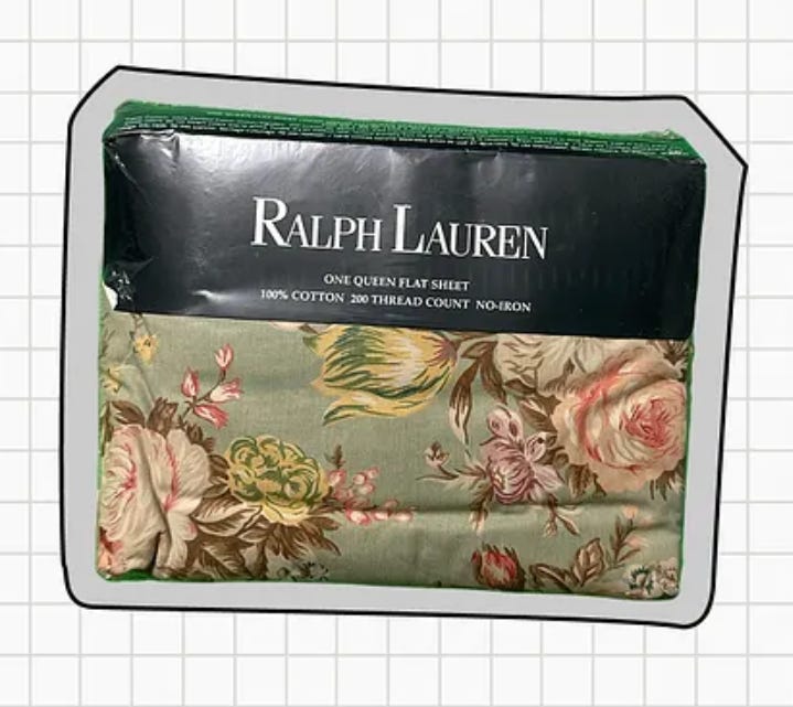 Although Ralph Lauren Home is still alive and well, vintage bedding shoppers have a penchant for the brand’s linens of the 1980s and ’90s, praising both their quality and homey style. The patterned sheets and comforters—especially the florals and paisleys—seem to be popular, at least among the bedheads on Reddit. Just a word to the wise: Sheets from this era are not designed to fit today’s monstrously tall mattresses, so do some measuring before purchasing.