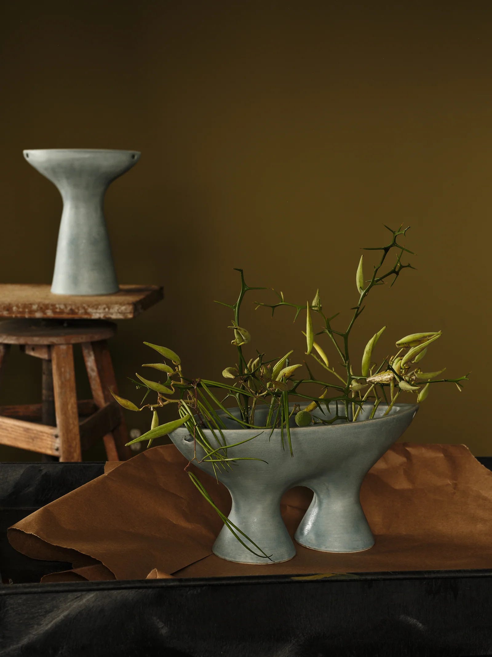 Danny Kaplan and Alex Crowder of Field Studies Flora have teamed up for Kloris, a collaborative collection of understated, flower-ready vases and pedestaled containers. (I asked Alex for a pro tip on clearing floral gunk out of my favorite vessels—she recommends using denture cleaner. So when you see me stocking up on Efferdent at CVS, now you know.)