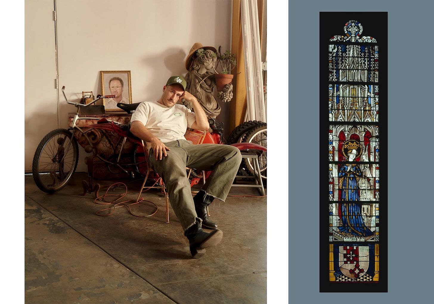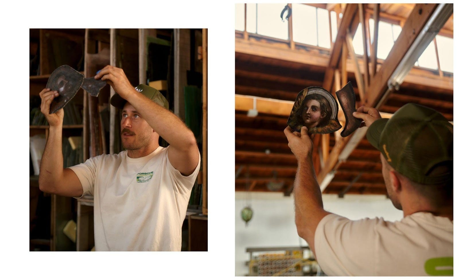 There’s a weird sacrilege to [the cars]. The church could be mad at me for doing this. But I think there’s an argument about these being installed, originally, to bring people closer to God—and now, these churches are torn down and the glass won’t see the light of day again. I’m revitalizing them, and applying them to automotive.
