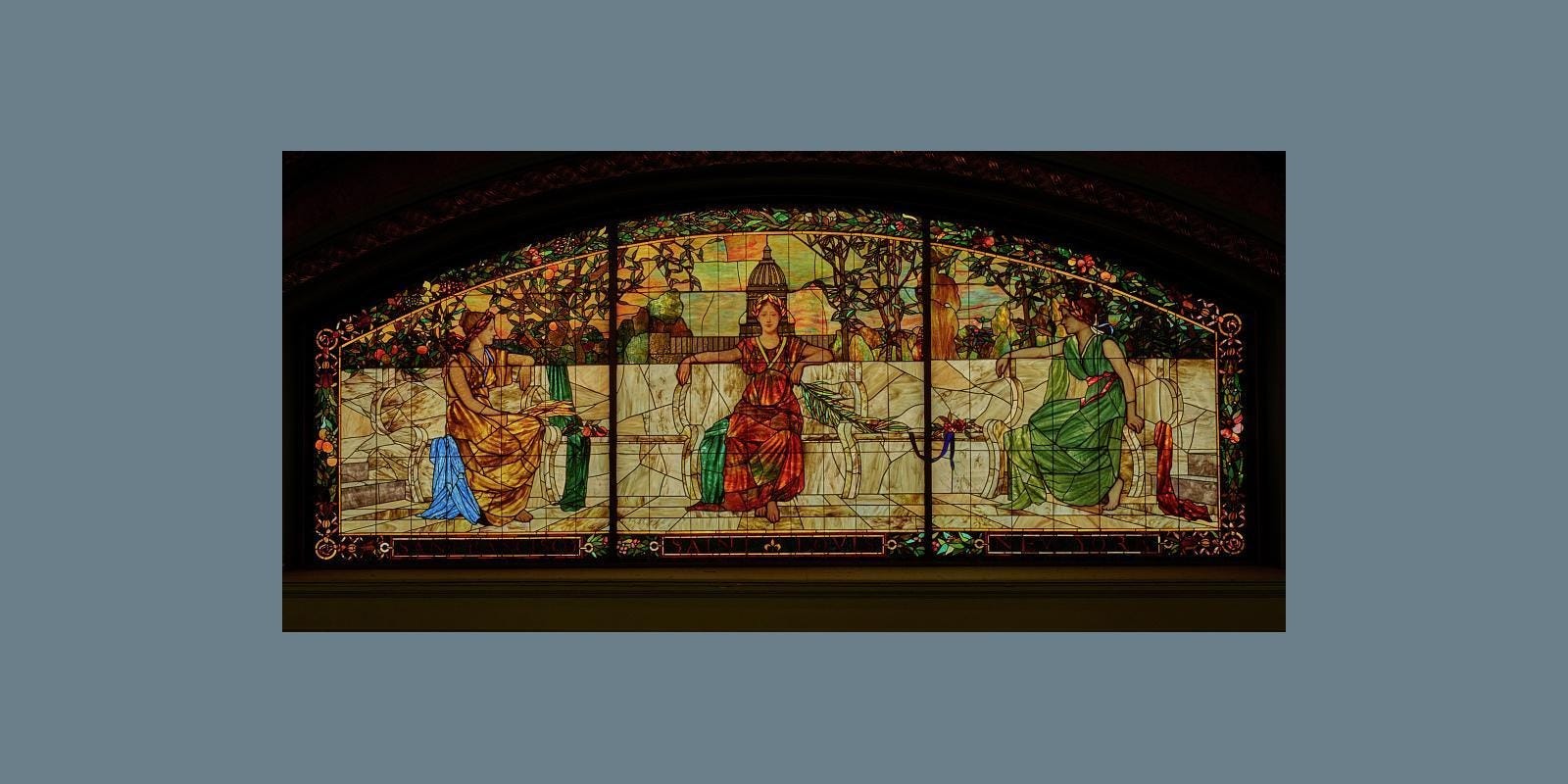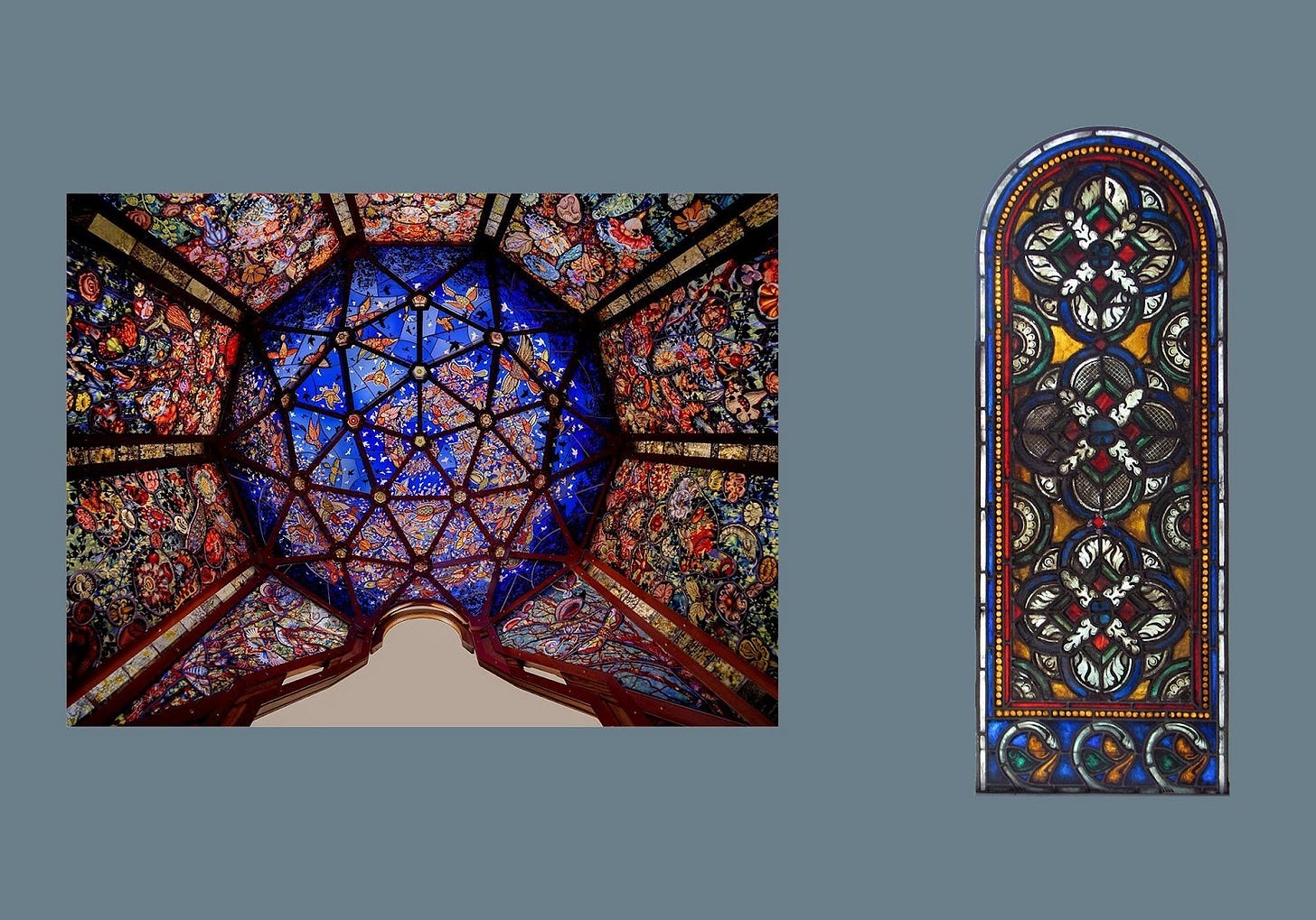 In some of the earliest stained glass, there was a really limited, certain color palette that was being used. Jewel-tones, primary colors, blues and reds and greens. Fast forward to the 20th century, particularly in England. They were looking at medieval and Gothic architecture, and reviving the past.