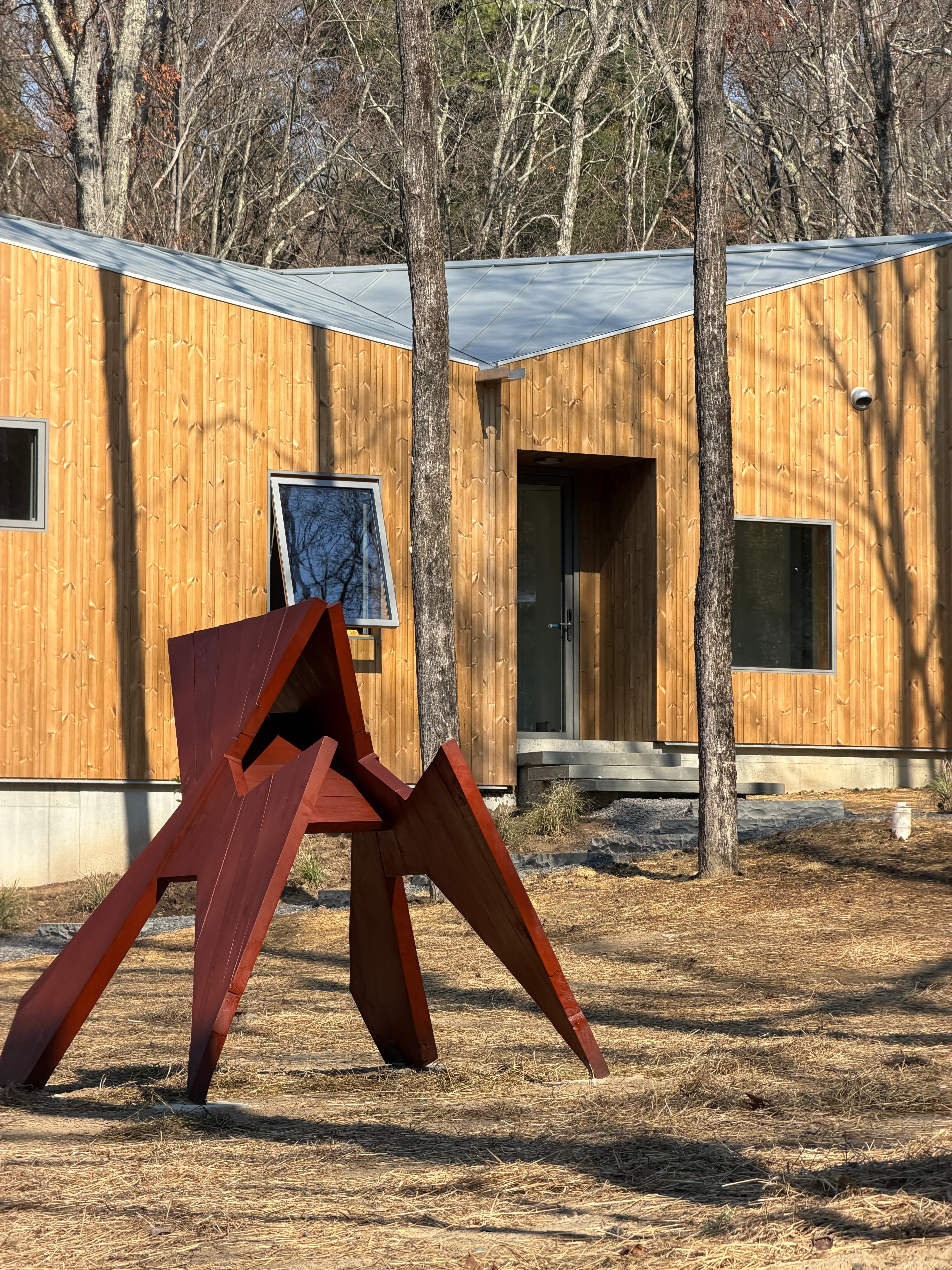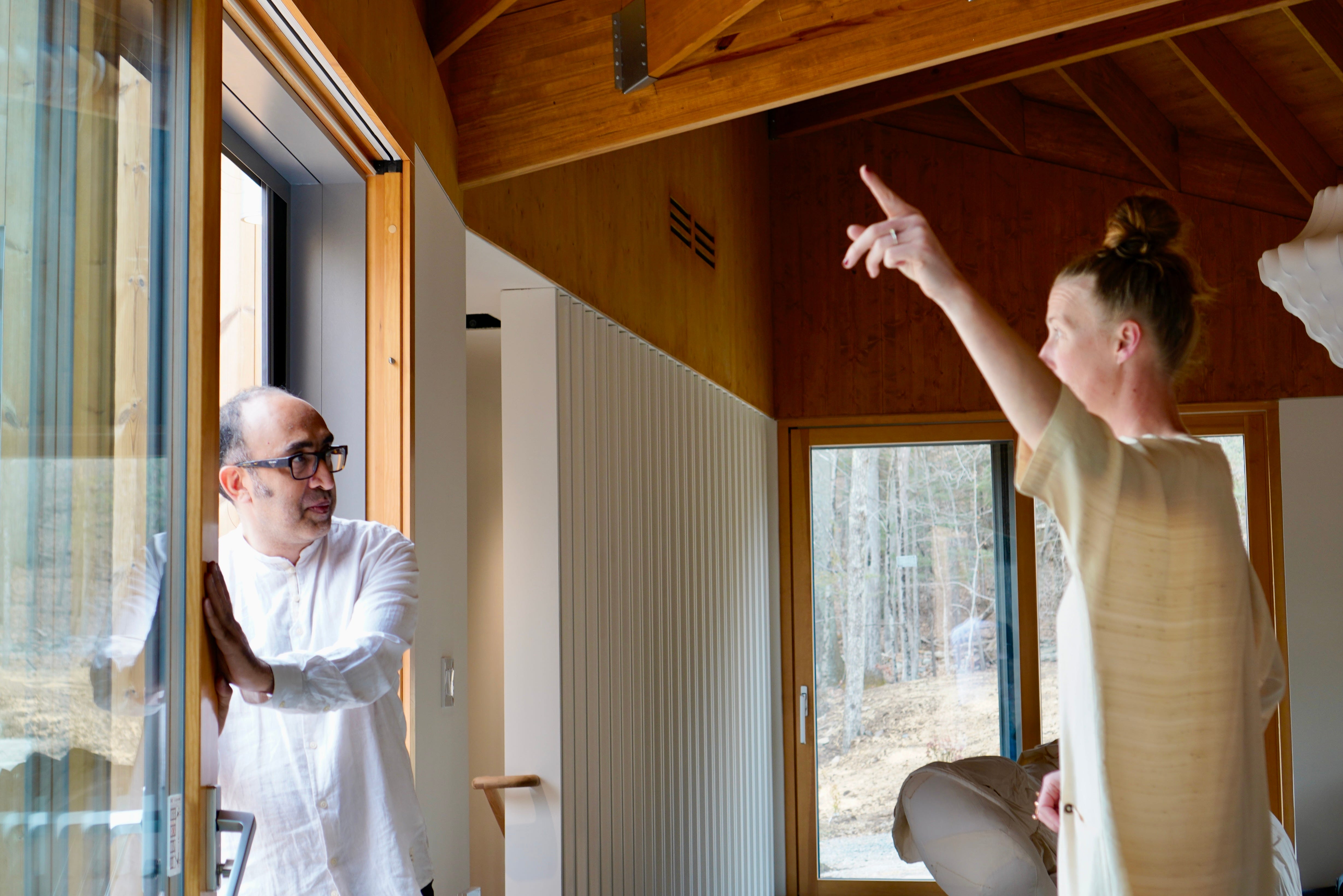 We sat down on the deck of architect Amin Tadj’s Ohayo Mountain House, just as guests began arriving for the opening of “Sense of Place,” an exhibition Chad and Kristin had organized there. Caterers moved up and down the stairs, speakers cut in and out, and Kristin kept one eye on our conversation and the other on the logistics of the evening. We were seated in folded aluminum chairs of Amin’s own design, surrounded by the low chaos of something not quite finished but very much coming to life.
