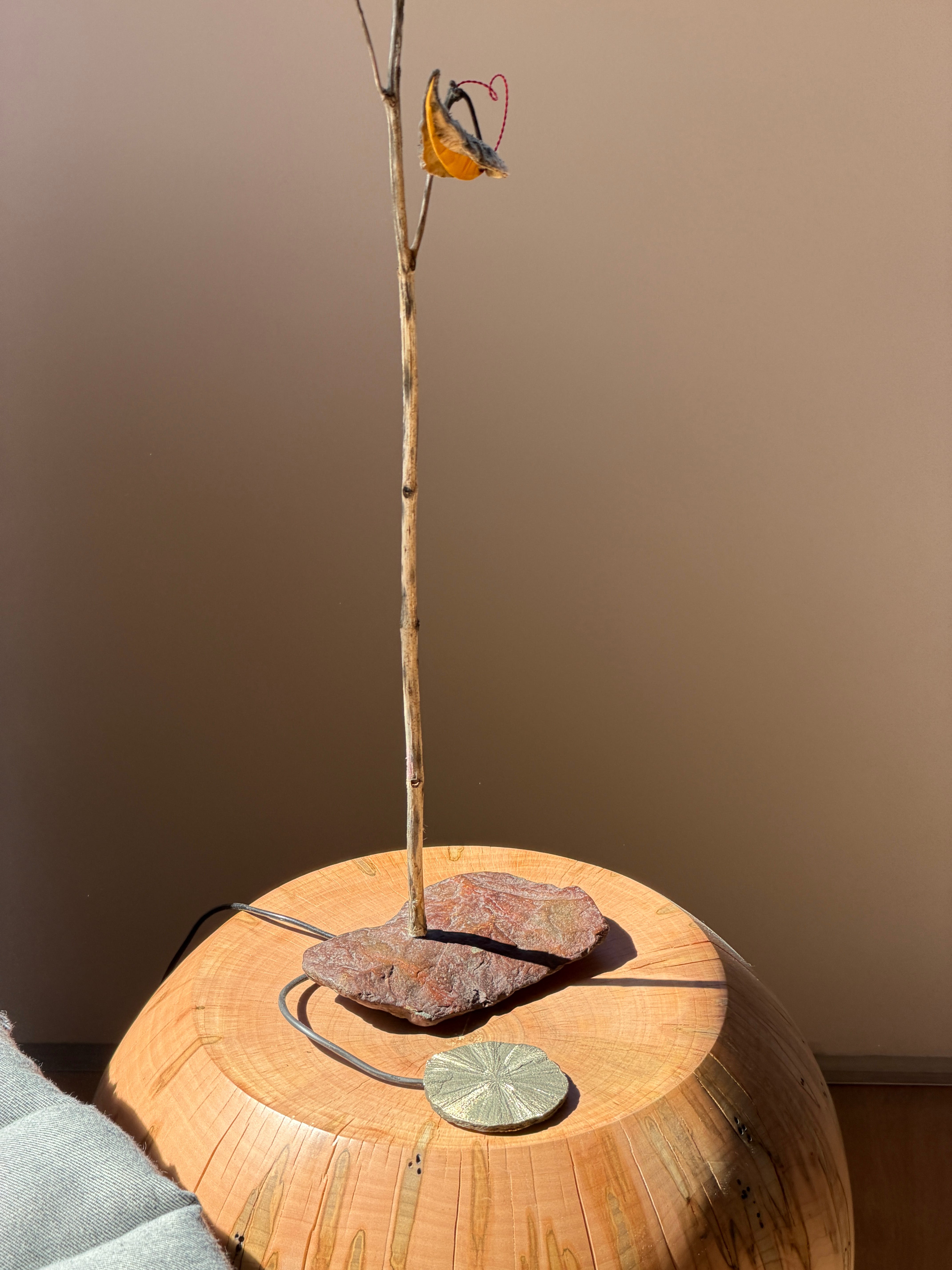 Milkweed Sun Touch Dimmer by Jake Coan and Stump Side Table (Bollard) by Kieran Kinsella. // Photo: Kristin Coleman